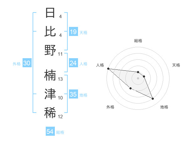 日比野 楠津稀さんの地格は35画の4点!