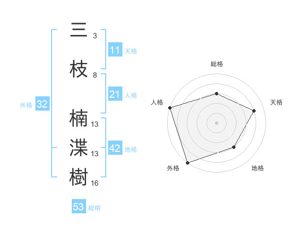 三枝 楠渫樹さんを姓名の画数から五運を鑑定