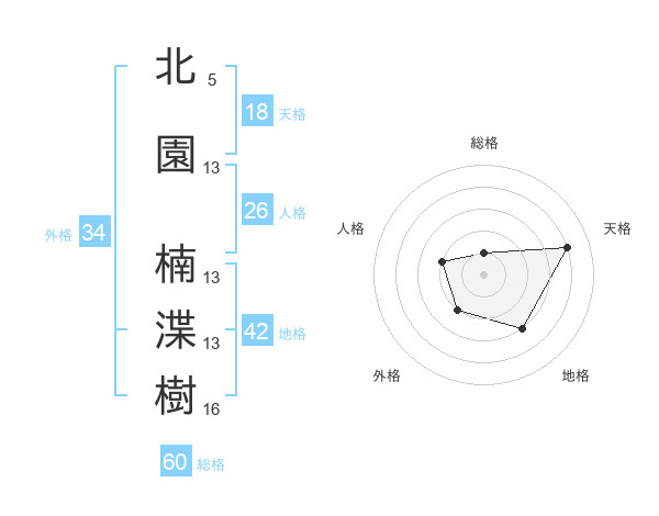 北園 楠渫樹さんを姓名の画数から五運を鑑定