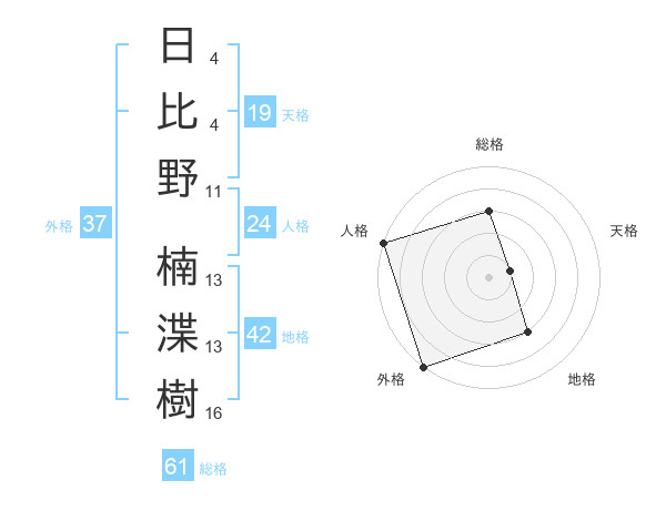 日比野 楠渫樹さんを姓名の画数から五運を鑑定