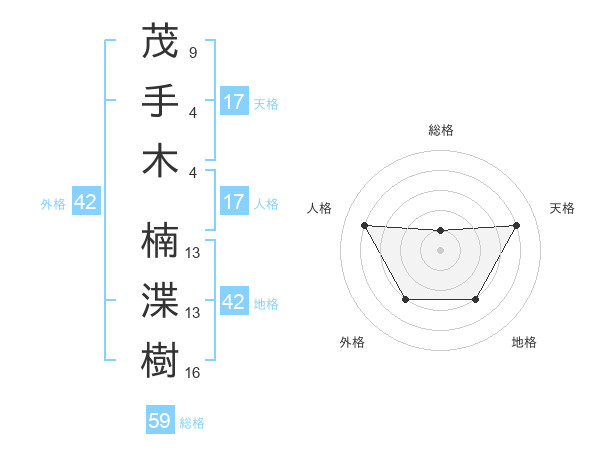 茂手木 楠渫樹さんを姓名の画数から五運を鑑定