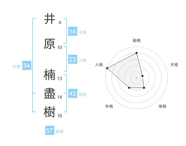 井原 楠盡樹さんを姓名の画数から五運を鑑定