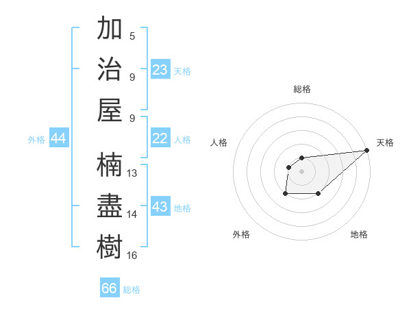 加治屋 楠盡樹さんを姓名の画数から五運を鑑定