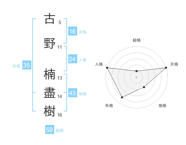 古野 楠盡樹さんの天格は16画の5点!