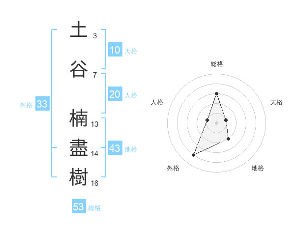 土谷 楠盡樹さんを姓名の画数から五運を鑑定