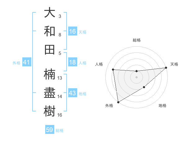 大和田 楠盡樹さんを姓名の画数から五運を鑑定