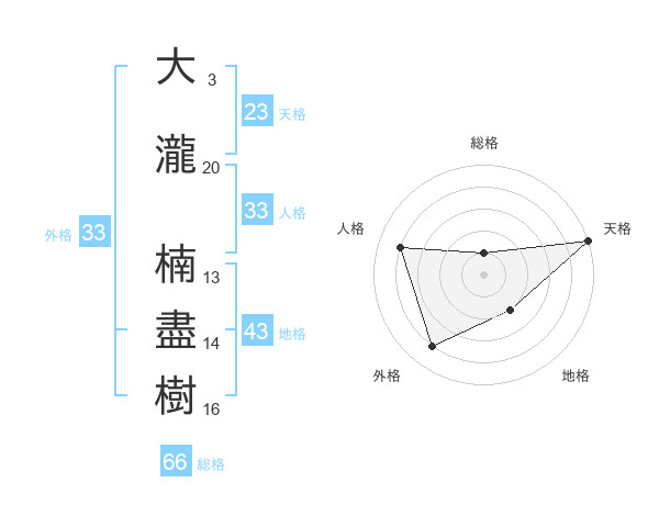 大瀧 楠盡樹さんの外格は33画の4点