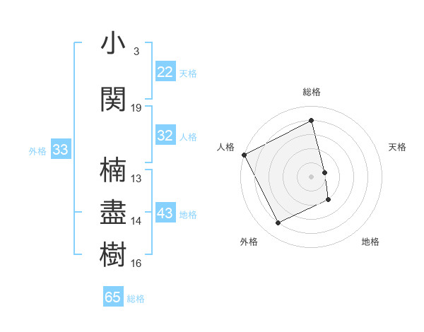 小関 楠盡樹さんを姓名の画数から五運を鑑定