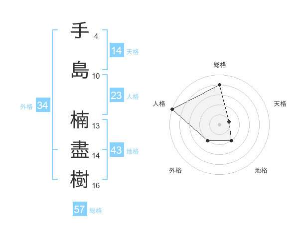 手島 楠盡樹さんを姓名の画数から五運を鑑定