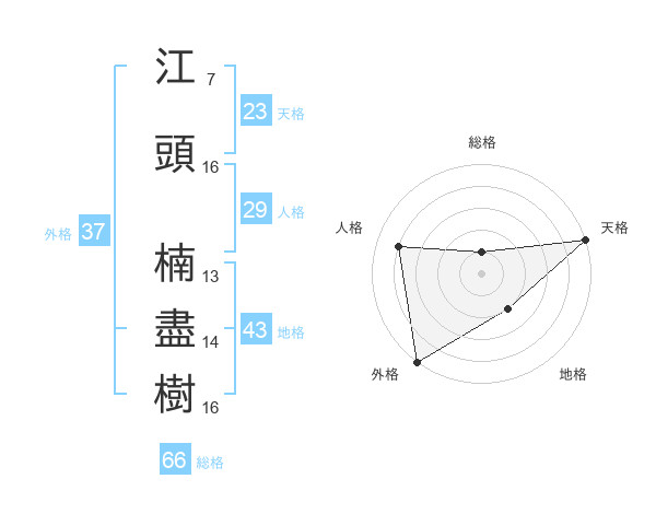 江頭 楠盡樹さんを姓名の画数から五運を鑑定