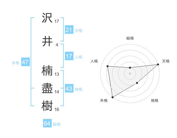 沢井 楠盡樹さんを姓名の画数から五運を鑑定