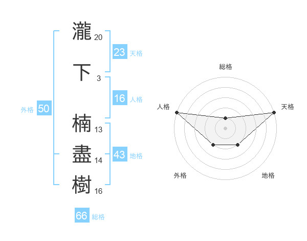 瀧下 楠盡樹さんの総格は66画の1点!