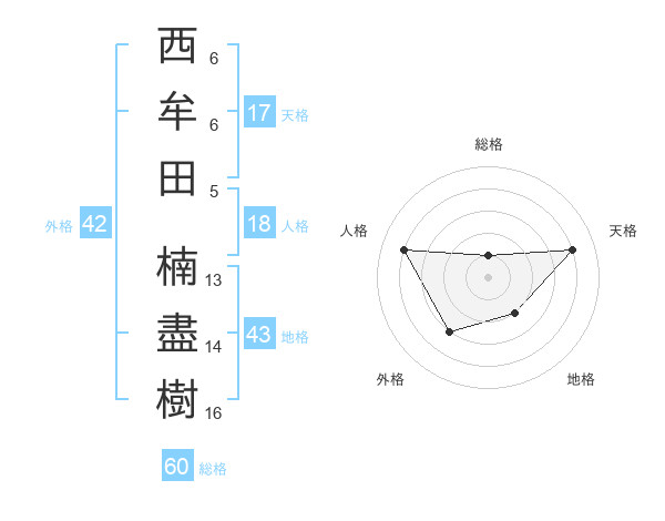 西牟田 楠盡樹さんの天格は17画の4点!