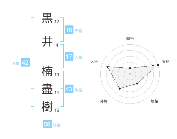 黒井 楠盡樹さんを姓名の画数から五運を鑑定