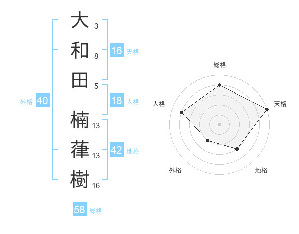 大和田 楠葎樹さんを姓名の画数から五運を鑑定