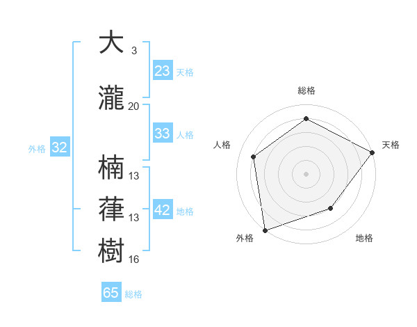 大瀧 楠葎樹さんを姓名の画数から五運を鑑定