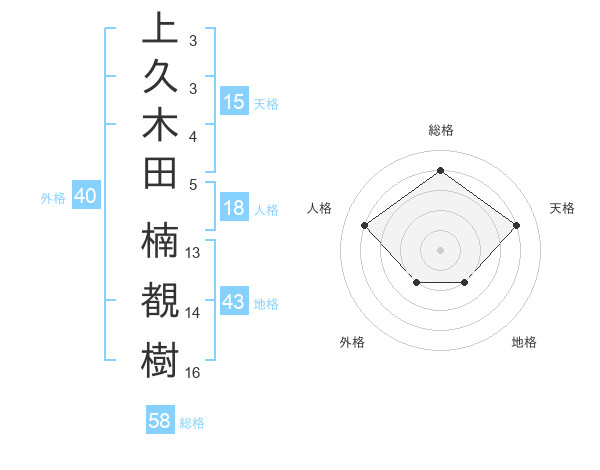 上久木田 楠覩樹さんを姓名の画数から五運を鑑定