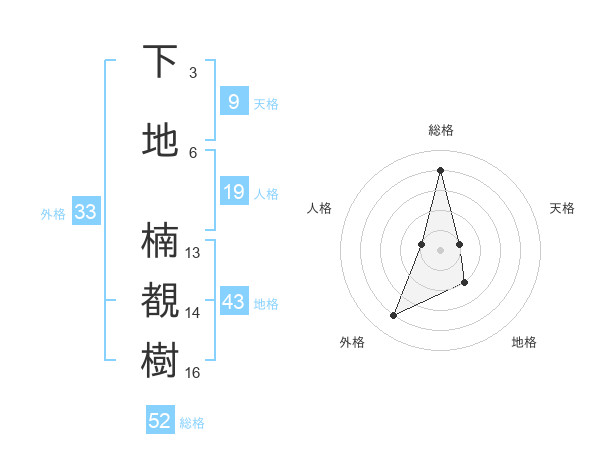 下地 楠覩樹さんを姓名の画数から五運を鑑定