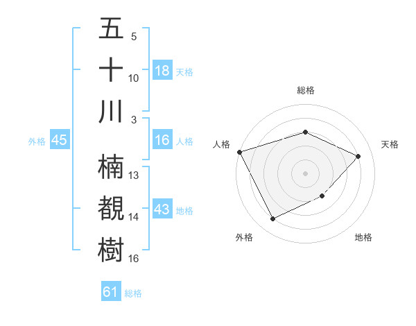 五十川 楠覩樹さんを姓名の画数から五運を鑑定