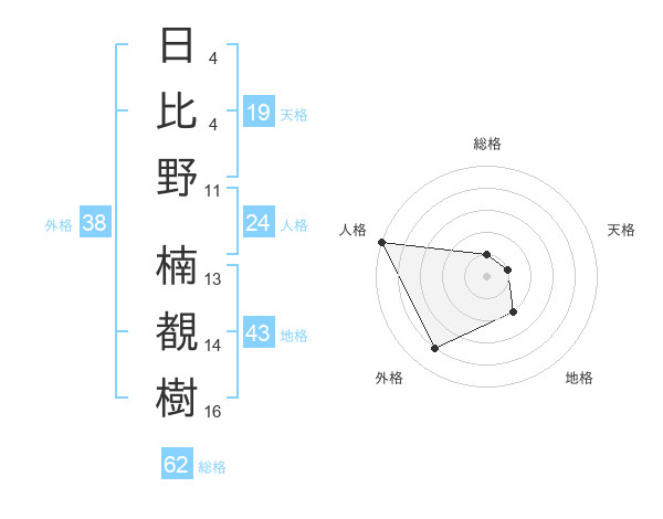 日比野 楠覩樹さんを姓名の画数から五運を鑑定