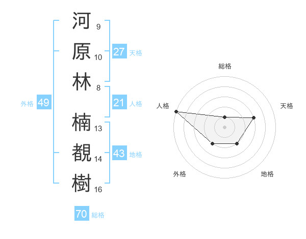 河原林 楠覩樹さんの地格は43画の2点