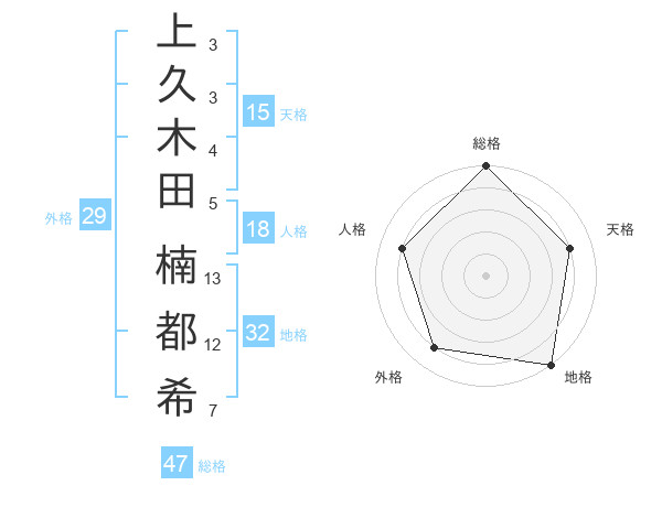 上久木田 楠都希さんの総格は47画の5点!