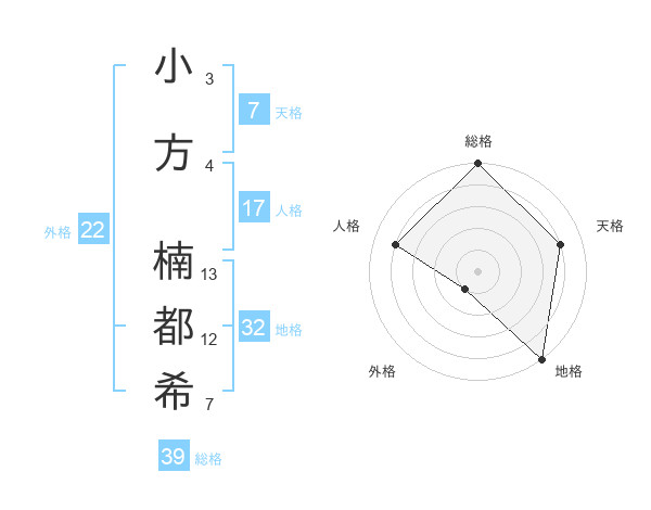 小方 楠都希さんを姓名の画数から五運を鑑定