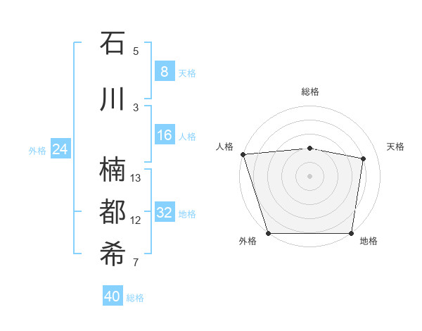 石川 楠都希さんを姓名の画数から五運を鑑定