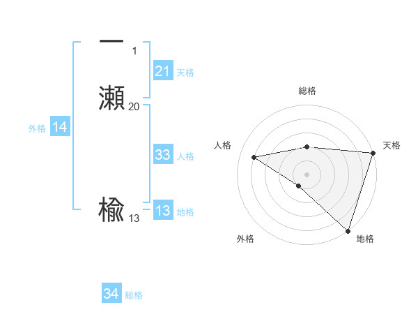 一瀬 楡さんの天格は21画の5点!