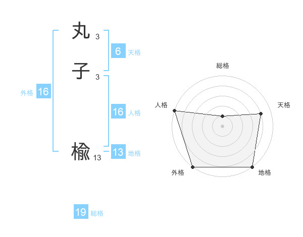 丸子 楡さんの外格は16画の5点!