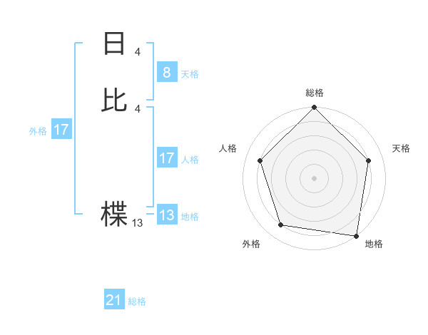 日比 楪さんの総格は21画の5点!