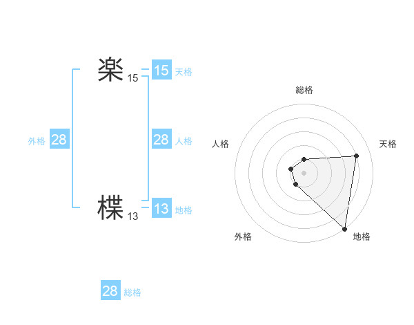 楽 楪さんの総格は28画の1点!