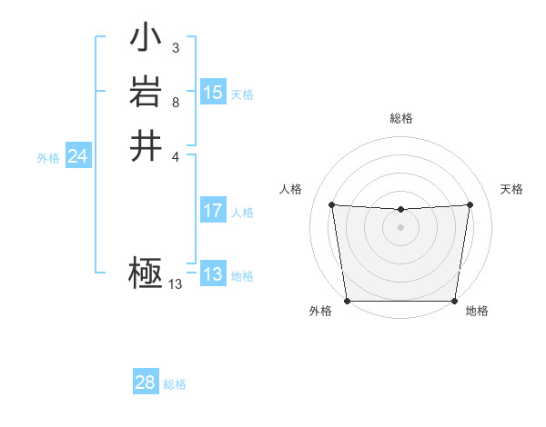 小岩井 極さんの外格は24画の5点!