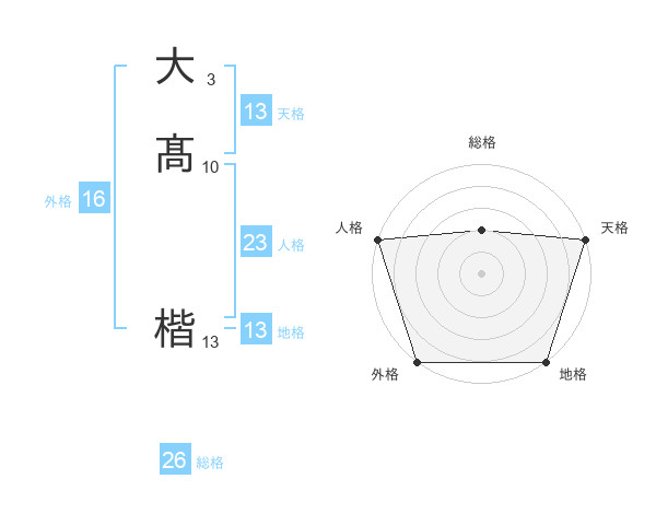 大髙 楷さんの天格は13画の5点!