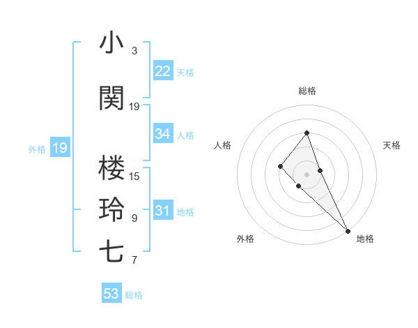 小関 楼玲七さんを姓名の画数から五運を鑑定