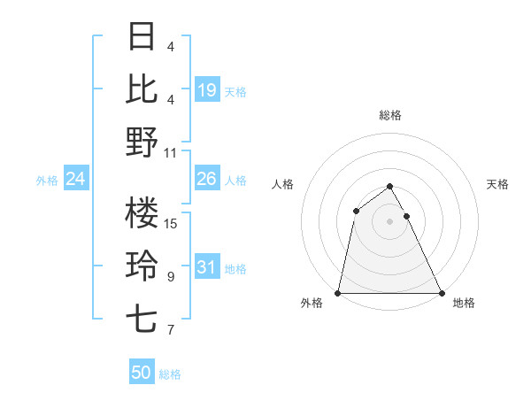日比野 楼玲七さんを姓名の画数から五運を鑑定