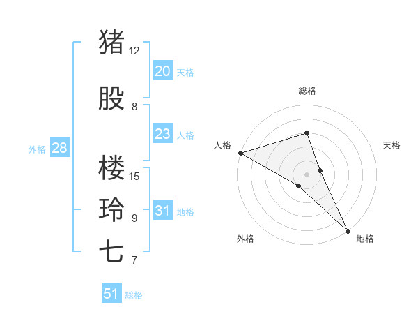 猪股 楼玲七さんを姓名の画数から五運を鑑定