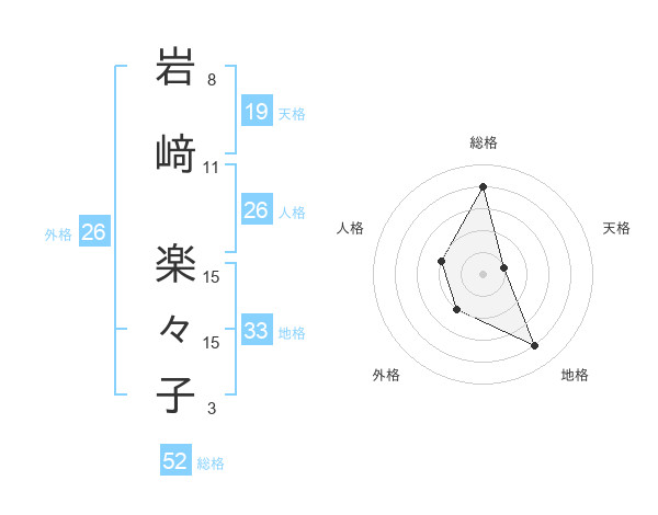 岩﨑 楽々子さんを姓名の画数から五運を鑑定
