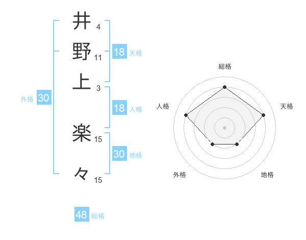 井野上 楽々さんを姓名の画数から五運を鑑定