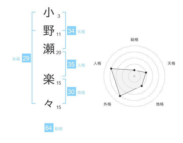 小野瀬 楽々さんを姓名の画数から五運を鑑定