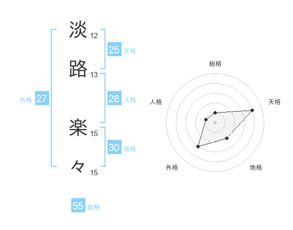 淡路 楽々さんの総格は55画の1点!