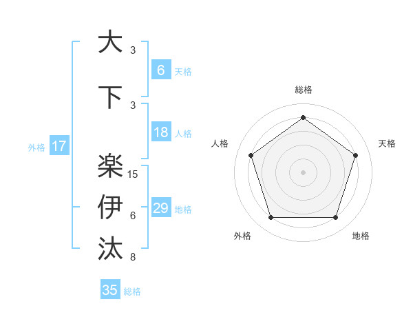 大下 楽伊汰さんを姓名の画数から五運を鑑定