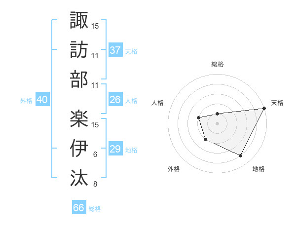 諏訪部 楽伊汰さんの総格は66画の1点!