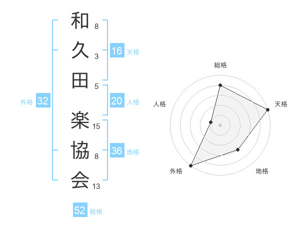 和久田 楽協会さんの総格は52画の4点!