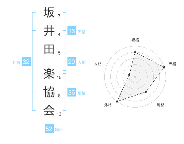 坂井田 楽協会さんの総格は52画の4点!