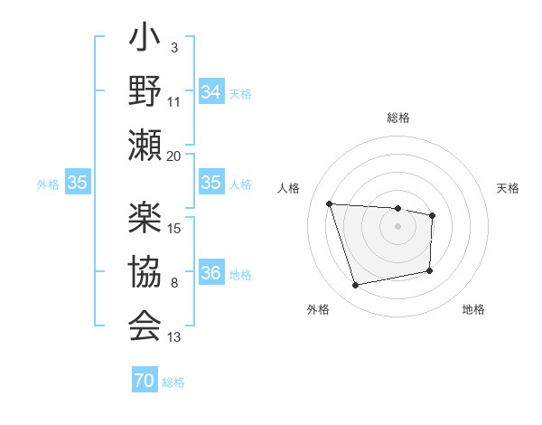 小野瀬 楽協会さんを姓名の画数から五運を鑑定