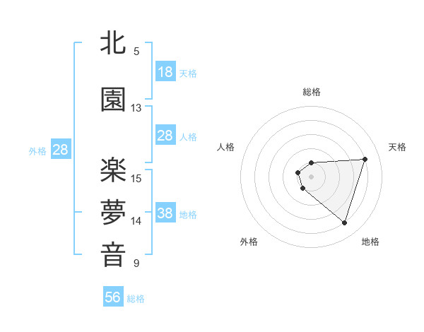北園 楽夢音さんを姓名の画数から五運を鑑定