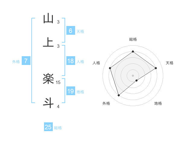 山上 楽斗さんを姓名の画数から五運を鑑定