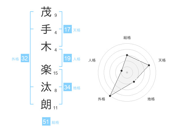 茂手木 楽汰朗さんを姓名の画数から五運を鑑定