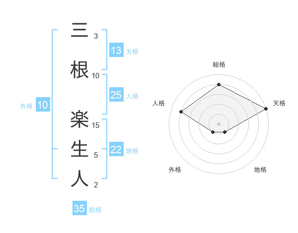 三根 楽生人さんを姓名の画数から五運を鑑定